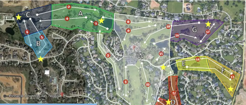 C – Walk to golf carts staged behind #6 green